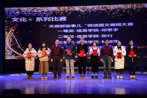12月12日下午,由信息工程学院主办的第十六届“网络与科技文化节”闭幕式晚会暨颁奖典礼在科学会堂举行,研究生处、资产设备管理处、网络与信息化中心、发展战略研究室、招生与就业处、机械工程学院、信息工程学院以及天津农商银行相关负责人出席。