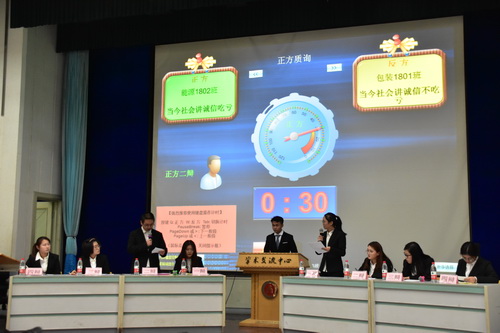 本次“诚·信”杯新生辩论赛实行淘汰制,分为初赛、复活赛、半决赛和决赛四个阶段,历时一个月,共12支队伍参选。经过各个辩论队之间的精彩角逐,最终包装1801班辩论队和能源1802班辩论队在节节比赛中脱颖而出,成功进入决赛。