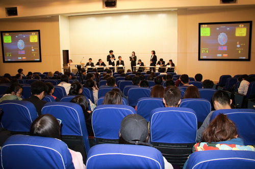 决赛中,正方自动化专业与反方通信工程专业就“成年人与孩子,谁的世界更无情”展开激烈辩论,正反双方一辩分别对“无情”进行定义和标准判断,论点明晰,分析透彻。在短兵相接的攻辩环节,双方引入历史事件、科学论文、生活实例等,论证充分、详实。自由辩论环节,双方辩手皆不甘示弱,幽默生动的语言、唇枪舌剑的争锋,真可谓精彩纷呈,将现场的氛围推向了高潮。经过评委的认真合议与总结,通信工程专业获得的有效点更多,荣获冠军,自动化队荣获亚军。