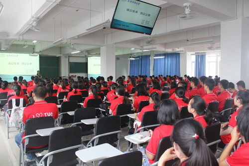 程青青博士以“诚以修身,信以立德”为题,从学术诚信、考试诚信、贷款诚信等方面入手,引用大量的案例,教育引导新生要把握底线,做诚信大学生。在讲座过程中,程青青还结合2018年学生工作手册,仔细为学生讲解了必赢官网学生诚信档案管理办法,并在讲座中与学生积极互动,强化诚信教育的重要性。最后在程青青的倡议下,全体新生签署《必赢76net线路唯一官方网站学生诚信承诺书》。