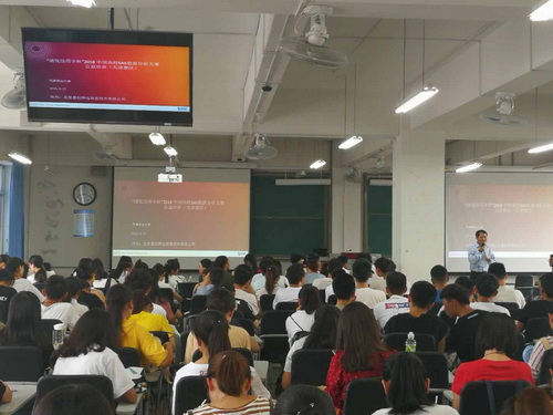 宣讲中,赵丹对SAS公司和软件产品的基本情况,包括公司发展沿革、人才和创新政策、数据分析及应用的成就等方面进行了详细介绍,并通过视频、图文等形式生动形象地对历届大赛情况、2018年大赛赛程、报名安排、奖项设置等基本信息进行了说明。
