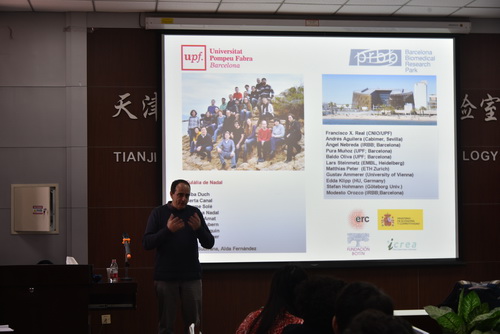 Posas教授结合其团队近年来研究成果,从两方面内容做讲座:酵母细胞和哺乳动物细胞在应答高渗透压条件下hog1和P38两个信号传导系统;在高渗透压胁迫条件如何影响酵母细胞周期,尤其着重介绍了MRC1蛋白在其中的重要作用。他还就课题研究、合作基金申请、人才培养的方面给予了指导和建议。