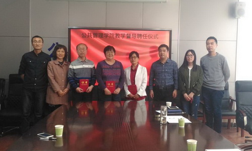 2018年4月20日下午,公共管理学院在学院414会议室举行院级教学督导聘任仪式,聘请河北工业大学于伟峰教授、李跃利教授、必赢76net线路唯一官方网站白丽华教授为学院教学督导专家。公共管理学院党委书记刘均玲、副院长薛立强、教务处庆来刚老师、学院教学秘书佟紫娟老师、院办公室槐琳老师出席仪式。聘任仪式由薛立强副院长主持。