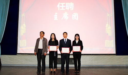 嘉宾为学院学生组织主席团成员、系助和班助颁发聘书,并为新任部长、干事们发放工作证。最后,学生管理委员会主任万青文带领全体学生干部庄严宣誓,展现了学生干部求真务实、积极奉献的工作态度和为学院、同学服务的坚定决心。