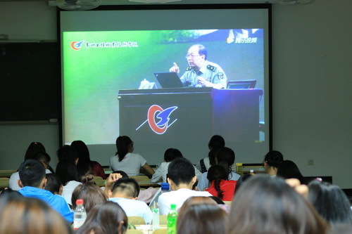 9月26日,校学生会在4号教学楼203室组织观看了国防大学战略教研部金一南教授《我和我的祖国》讲座视频。
