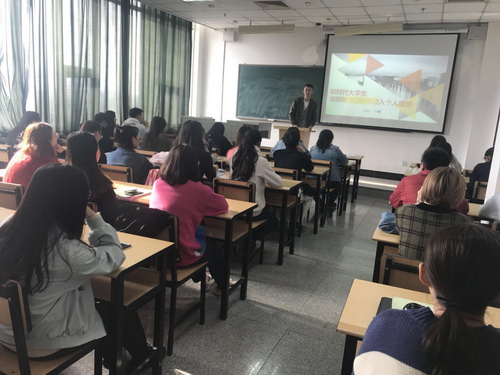 10月31日下午,国际教育合作学院在F304举办了优秀学生党员事迹报告会,学院优秀学生党员、酒店管理1406班学生孙嘉,为部分学生党员、入党积极分子做了题为“新时代大学生如何将家国情怀融入个人理想”的报告。会议由辅导员马京京老师主持。