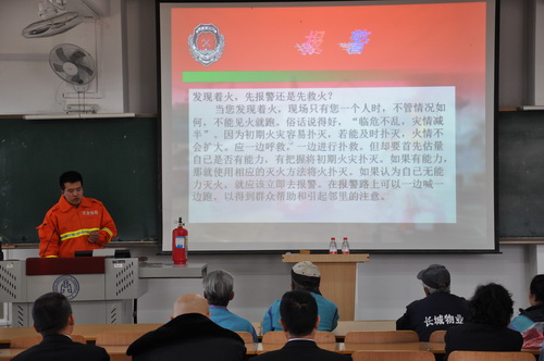 此次讲座涉及火灾预防、火灾扑救、火灾逃生、自救方法等多个方面的内容。在讲座中,本溪路中队指导员同志借助幻灯片和视频,生动形象地向工作人员展现了几起特大火灾事故,继而深入剖析火灾发生的原因、自救的方法,并在现场演示了灭火器的使用。