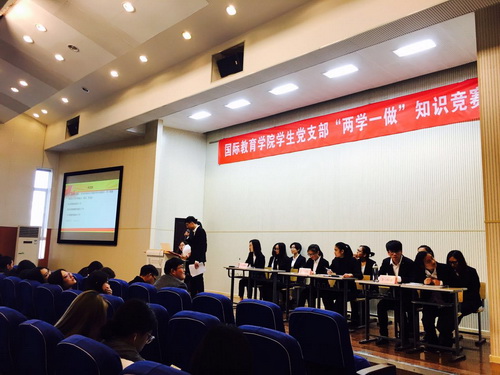 11月25日下午,国际教育学院学生党支部“两学一做”知识竞赛决赛在7教2楼报告厅举办。学院党总支书记方雷,辅导员任红、杨奕出席此次活动并为获奖选手颁奖。学生党员、入党积极分子共100余名同学参加了本次活动。