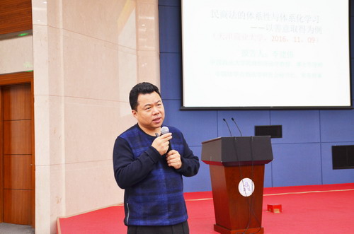李建伟教授长期从事民商法的教学与研究工作,在民商法学科和多个领域内有很高的学术声望和影响。他以“民法的体系性与体系化学习”为题,结合现实热点问题,介绍了当下中国民事立法的局限与困境,以大量现实案例为线索全面剖析了善意取得制度的制度特征和实践应用。通过对善意取得制度的解读与延伸,李教授倡导法学授课应以案例教学为主,法律学习应不局限于单个部门法,而应该体系性、全面化的学习。