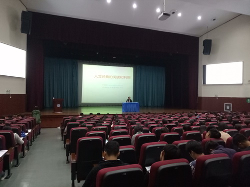 10月13日下午,商学院在科学会堂举行人文讲座,图书馆李爱民博士作了“人文经典的阅读和利用”专题讲座,讲座由商学院党委副书记翟云锋主持,近700余名新生参加。