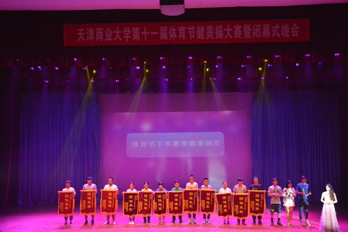 来自 12 个学院的健美操参赛队伍历经两个月的拼搏,从舞蹈编排到音乐选择、从整体构思到动作推敲花费了大量心血,充分展现了同学们的智慧与创造力,反映了必赢官网学生的良好精神风貌,整场比赛精彩不断,高潮迭起,彰显出了当代大学生的青春与活力 。经过激烈的角逐,公共管理学院斩获冠军,信息工程学院以微弱差距夺得亚军、生物技术与食品科学学院获得季军。本届体育节各个赛项的获奖情况也在比赛间隙一一揭晓,经济学院和商学院双双夺冠,信息工程学院和公共管理学院分获亚军和季军,体育教学部教师代表与校团委工作人员为获奖团队颁发了锦旗。