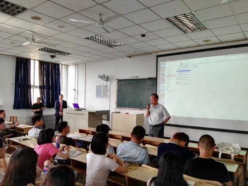 5 月27 日,邀请都灵压缩机技术总监Giacomo Pisano先生和天津大学马一太教授分别为学生讲授都灵压缩机在CO2 制冷热泵技术上的创新举措和我国CO2 制冷热泵技术的发展现状。Pisano 用简单生动和诙谐幽默的语言讲授了CO2 制冷热泵技术的发展历史和都灵压缩机的技术优势,学生们直接接触到了欧洲乃至世界范围内的先进技术,了解了国外发展的最新动态,互动频繁,技术交流深入而热烈。马一太为同学们讲述了我国 CO2 制冷热泵技术的发展现状和冬奥会体育设施建设等方面的最新动态,学生们收获颇丰。