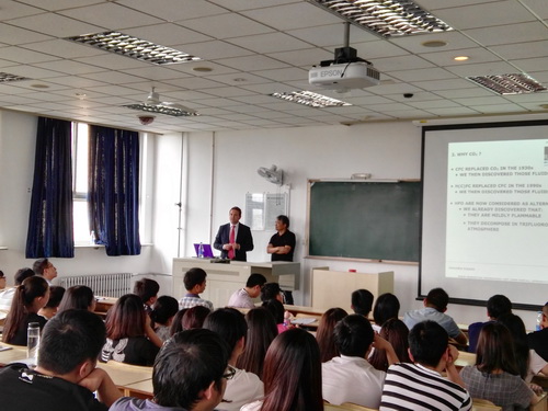 近年来,二氧化碳制冷热泵技术在制冷空调行业内快速发展,成为行业应用和研究的热点,为使学生们能够更加直接和深入的了解CO2 制冷热泵技术,制冷与空调工程系在教学方法和教学思路上进行改革,将CO2制冷热泵技术前沿产业专家和学者请进课堂,邀请国内外知名企业技术负责人和学者为学生和教师讲授技术前沿应用知识。
